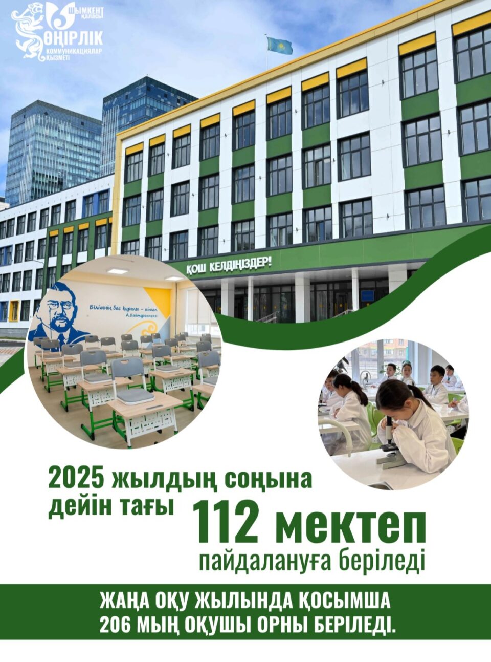 Қазақстанда білім беру инфрақұрылымын дамыту бағытында ауқымды жұмыстар жалғасуда. 2025 жылдың соңына дейін елімізде қосымша 112 жаңа мектеп пайдалануға беріледі. Бұл мыңдаған баланың заманауи, қауіпсіз әрі сапалы білім алуына жол ашатын маңызды қадам. Жаңа оқу жылында 206 мың оқушыға қосымша орын ұсынылмақ.
