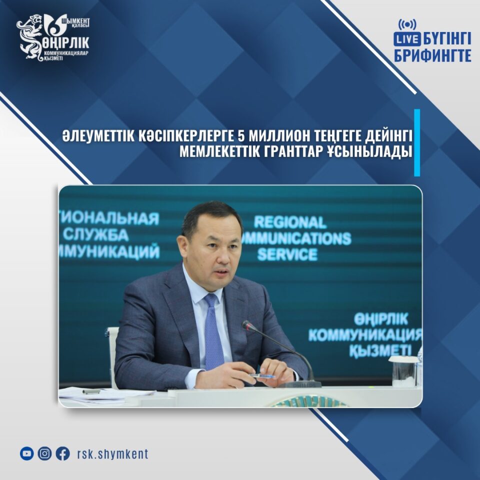 Шымкент қаласында әлеуметтік кәсіпкерлікті дамытуға бағытталған жаңа мүмкіндік ашылды. 2025 жылдың 29 қазаны мен 5 қарашасы аралығында әлеуметтік кәсіпкерлік субъектілері үшін қайтарымсыз мемлекеттік гранттарға өтінім қабылдау басталады. Өтінімдер kezekte.kz электронды порталы арқылы қабылданады.