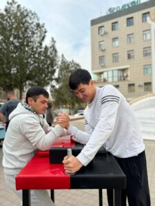 На площади у здания Ассамблеи прошли спортивные соревнования, где были выявлены сильнейшие в армрестлинге. Участники продемонстрировали силу духа и пропагандировали здоровый образ жизни, подчеркивая праздничное настроение дня.