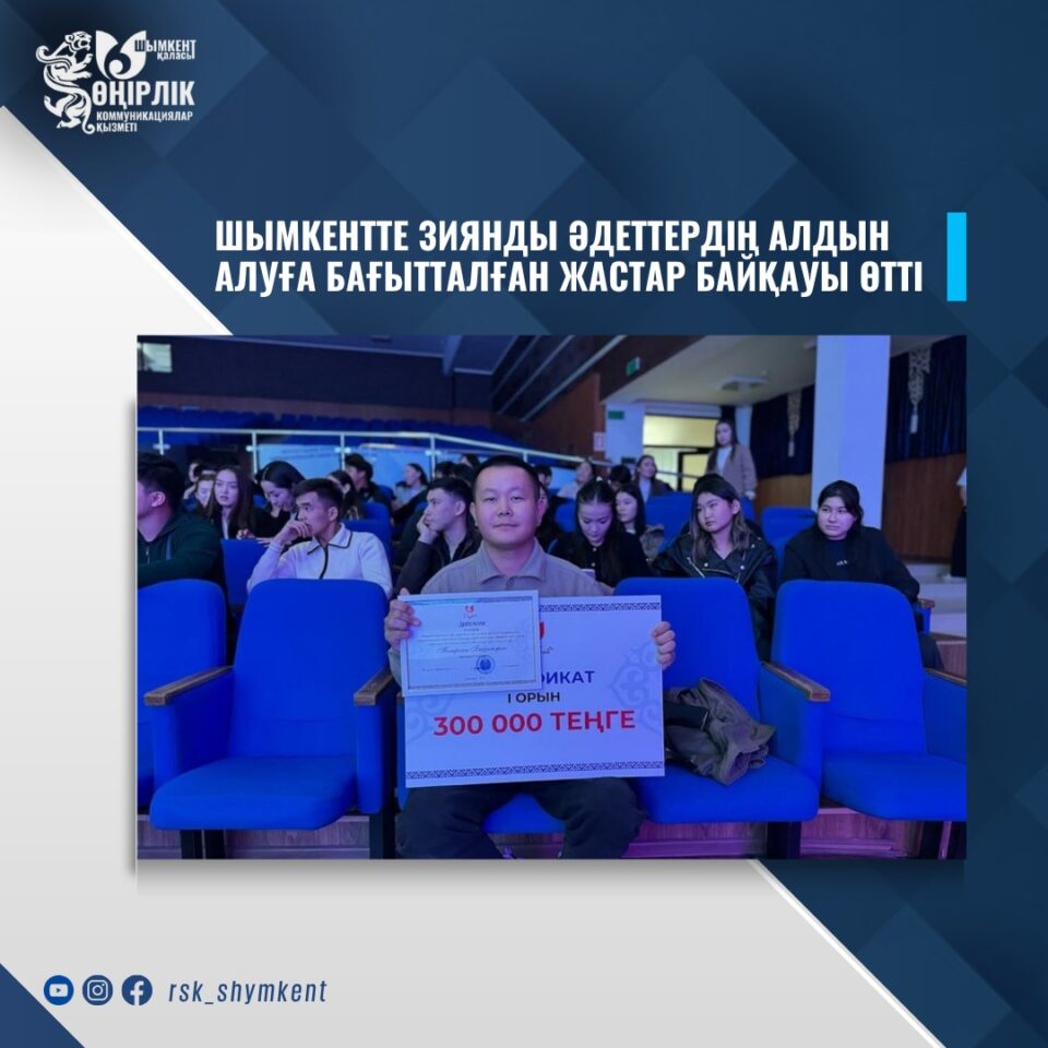 ШЫМКЕНТТЕ ЗИЯНДЫ ӘДЕТТЕРДІҢ АЛДЫН АЛУҒА БАҒЫТТАЛҒАН ЖАСТАР БАЙҚАУЫ ӨТТІ