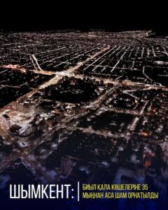 🔷 Шымкент қаласында көшелерді жарықтандыру мақсатында тиісті жұмыс атқарылып, 1800-ге жуық көшеге жалпы саны 35 218 жарық шамы орнатылды. Соның нәтижесінде жыл соңына дейін қала көшелері 100% жарықтандырылады.