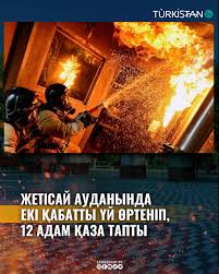 ЖЕТІСАЙ АУДАНЫНДА ЕКІ ҚАБАТТЫ ҮЙ ӨРТЕНІП, 12 АДАМ ҚАЗА ТАПТЫ