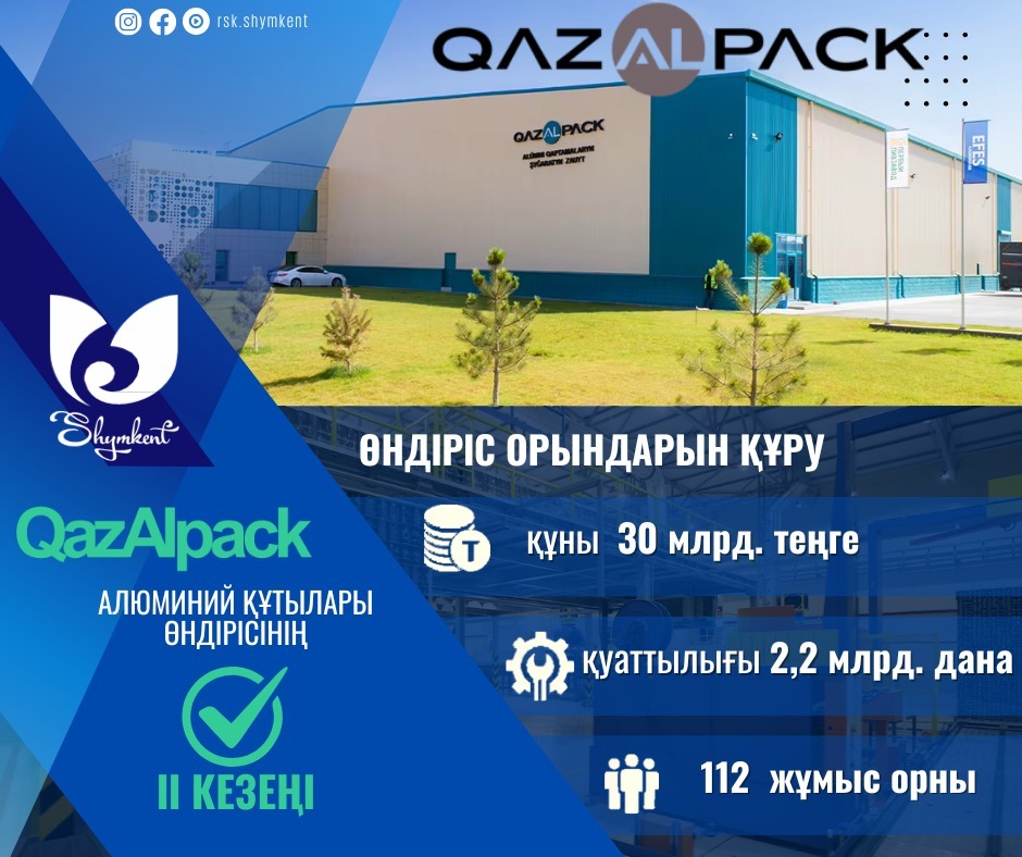 Индустриялық аймақтарда жүзеге асырылып жатқан жобалардың басым бөлігі жаңа технологияларға негізделген. Солардың ішінде биылғы жылғы ірі әрі маңызды жобалардың бірі – орталық Азияда баламасы жоқ «QazAlpack» компаниясының алюминий банкілерін өндіру жобасы. Өнімге ішкі және сыртқы нарықта сұраныстың артуына байланысты құны 30 млрд теңгені құрайтын жобаның екінші кезеңі іске қосылды. Зауыттың өндірістік қуаты жылына 2,2 млрд дана алюминий банкісін шығаруға мүмкіндік береді. Жоба аясында 112 тұрақты жұмыс орны құрылып, экспорт көлемін ұлғайтуға зор үлес қосуда.