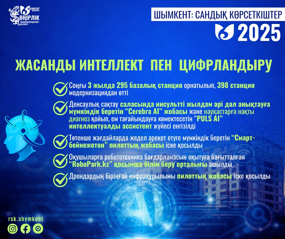 Соңғы жылдары Шымкент қаласында цифрлық инфрақұрылымды дамыту және жасанды интеллект (ЖИ) технологияларын түрлі салаларға кеңінен енгізу бағытында жүйелі әрі ауқымды жұмыстар атқарылуда. Қаланың тұрақты дамуын қамтамасыз ету, тұрғындардың өмір сүру сапасын арттыру және заманауи технологияларды тиімді пайдалану негізгі басымдықтардың біріне айналды.
