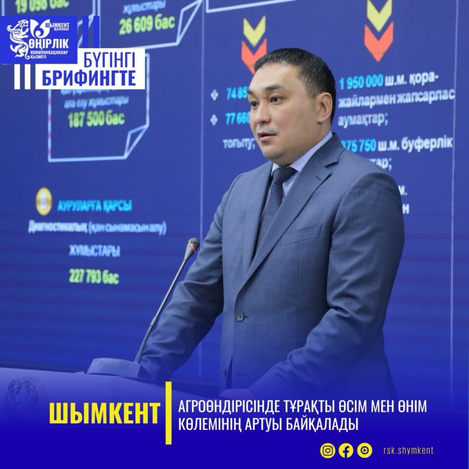 Нәтижесінде қалада ауыл шаруашылығы саласының тұрақты өсімі мен өнім көлемінің артуы қамтамасыз етіліп, агроөндіріс қала экономикасында маңызды рөл атқаруда. Бұл үрдіс алдағы жылдары да жалғасын тауып, Шымкенттің азық-түлік қауіпсіздігі мен аграрлық дамуына қосымша серпін береді.