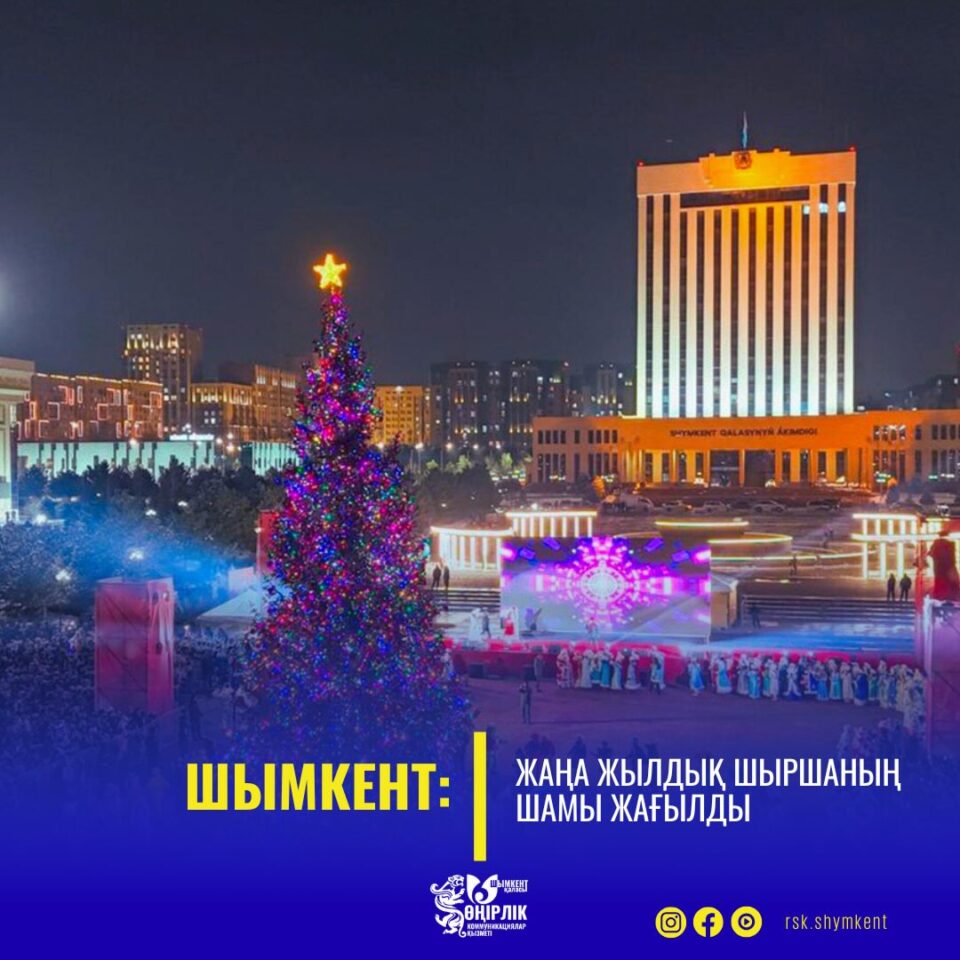 ШЫМКЕНТ: ЖАҢА ЖЫЛДЫҚ ШЫРШАНЫҢ ШАМЫ ЖАҒЫЛДЫ.Шымкент қаласының басты жаңа жылдық шыршасының шамдарын жағу рәсімі салтанатты түрде өтті. Алғаш рет осындай форматта ұйымдастырылған және Астана алаңында мыңдаған қала тұрғыны мен қонақтарын жиналған мерекелік іс-шараға Шымкент қаласының әкімі Ғабит Сыздықбеков қатысты.