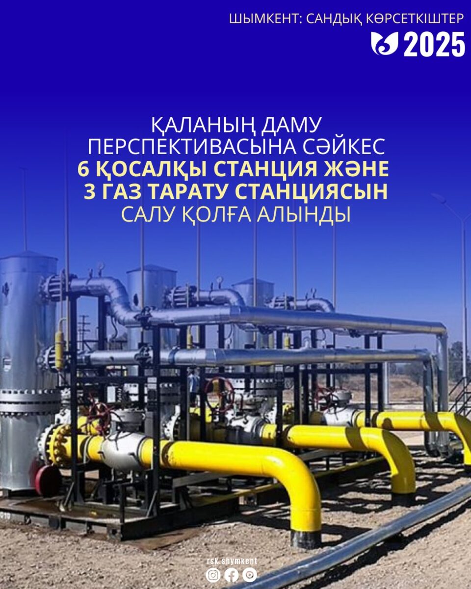 Осы мақсатта алдағы кезеңде қала аумағында 6 электр қосалқы станциясы мен 3 газ тарату станциясын салу жоспарланған. Бұл нысандар электр энергиясы мен табиғи газға деген сұранысты толық өтеуге, жаңа тұрғын алаптар мен өндірістік аймақтарды инженерлік желілермен қамтуға мүмкіндік береді. Сонымен қатар, энергетикалық және газ инфрақұрылымының сенімділігін арттырып, апаттық жағдайлардың алдын алуға ықпал етеді.