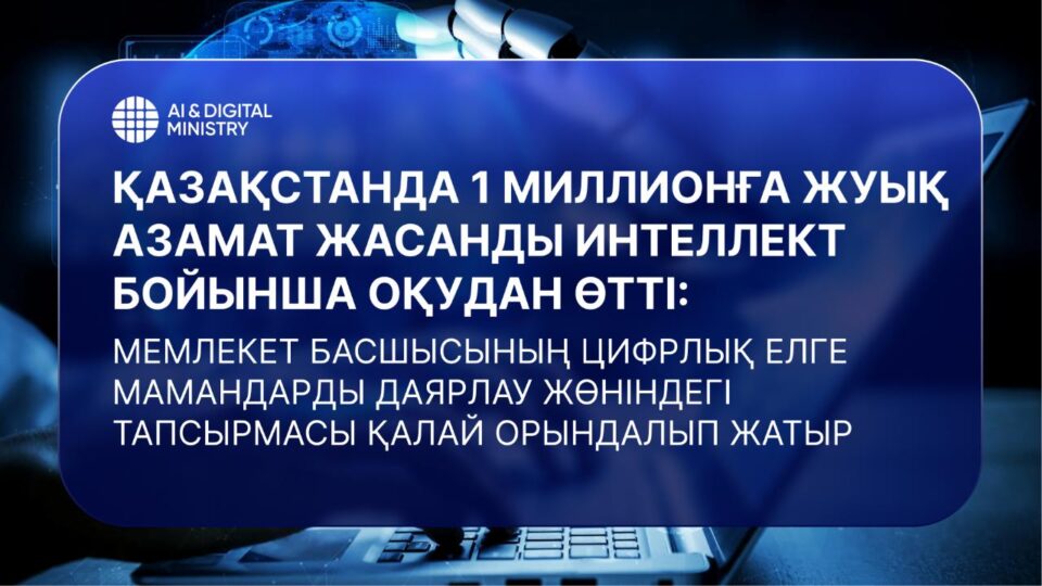 ҚАЗАҚСТАНДА 1 МИЛЛИОНҒА ЖУЫҚ АЗАМАТ ЖАСАНДЫ ИНТЕЛЛЕКТ БОЙЫНША ОҚУДАН ӨТТІ: МЕМЛЕКЕТ БАСШЫСЫНЫҢ ЦИФРЛЫҚ ЕЛГЕ МАМАНДАРДЫ ДАЯРЛАУ ЖӨНІНДЕГІ ТАПСЫРМАСЫ ҚАЛАЙ ОРЫНДАЛЫП ЖАТЫР