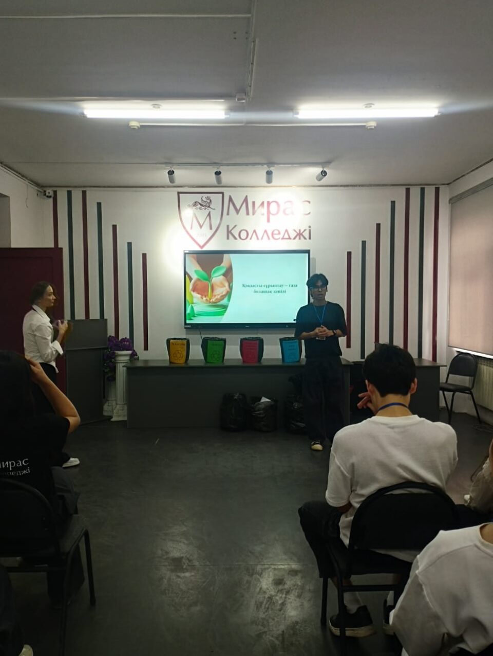 «Мирас» колледжінде республикалық «Таза Қазақстан» бағдарламасы аясында «Қоқысты сұрыптау – таза болашақ кепілі» атты экологиялық іс-шара өтті. Студенттерге қоршаған ортаны қорғаудың маңызы мен қалдықтарды өңдеудің пайдасы түсіндірілді.