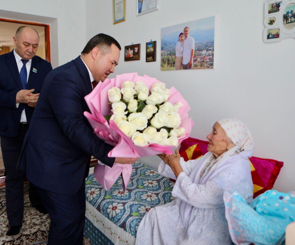 Сондай-ақ, тыл ардагері, көпбалалы Батыр ана, «Алтын алқа» иегері Пачанова Шадаттың шаңырағында болып, мерекелік лебізін жеткізді. Өмірін еңбекпен өріп, ұрпақ тәрбиесіне арнаған ардақты ана 9 бала тәрбиелеп өсірген.